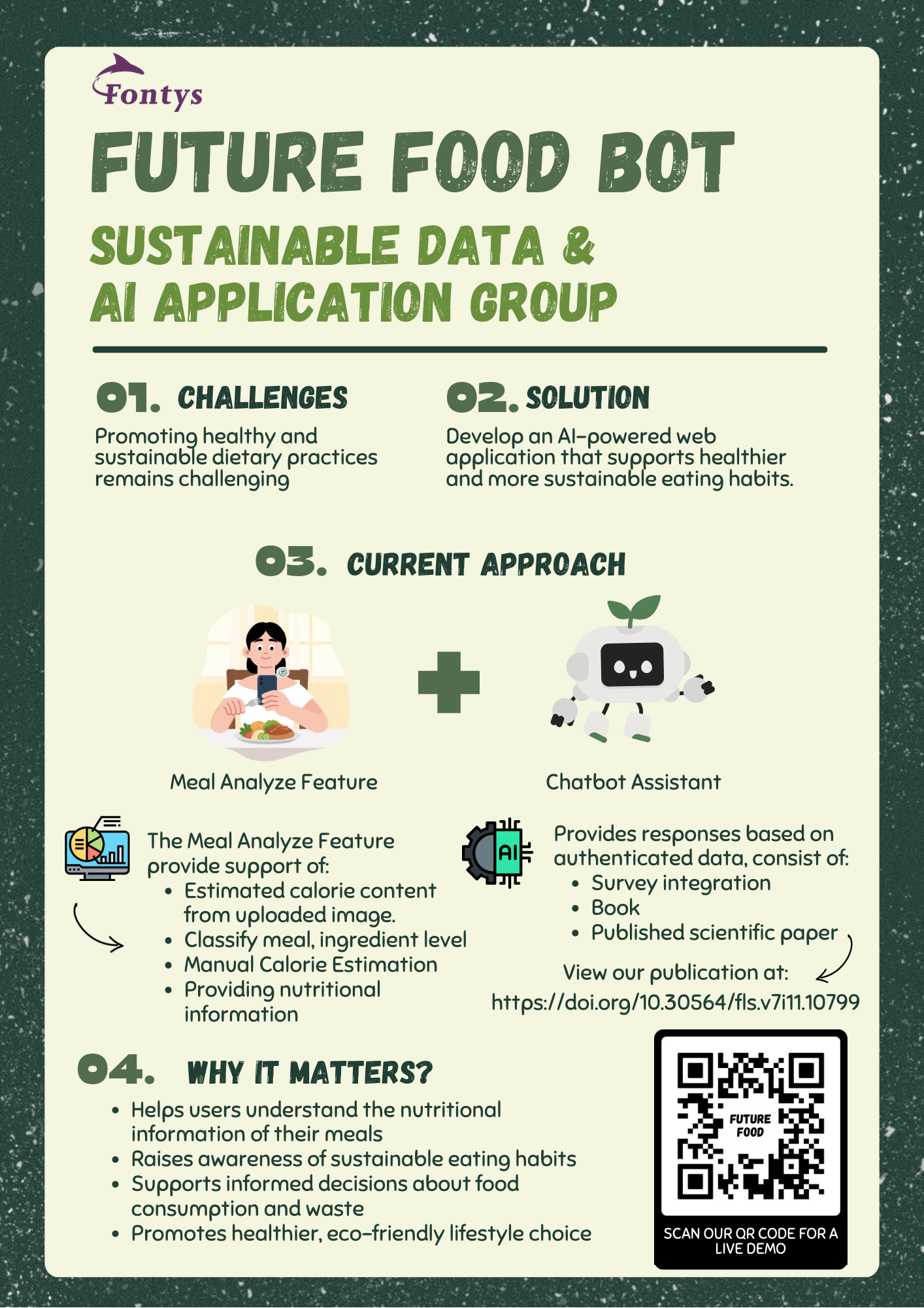 Beyond the technical products, the project generates important insights into how AI systems can influence food-related decision-making. The results show that combining explainable nutritional predictions with evidence-based conversational guidance can enhance user awareness of both health and sustainability aspects. Furthermore, the integration of ethical considerations, such as data transparency and responsible AI use, adds long-term value by supporting user trust and informed choices.